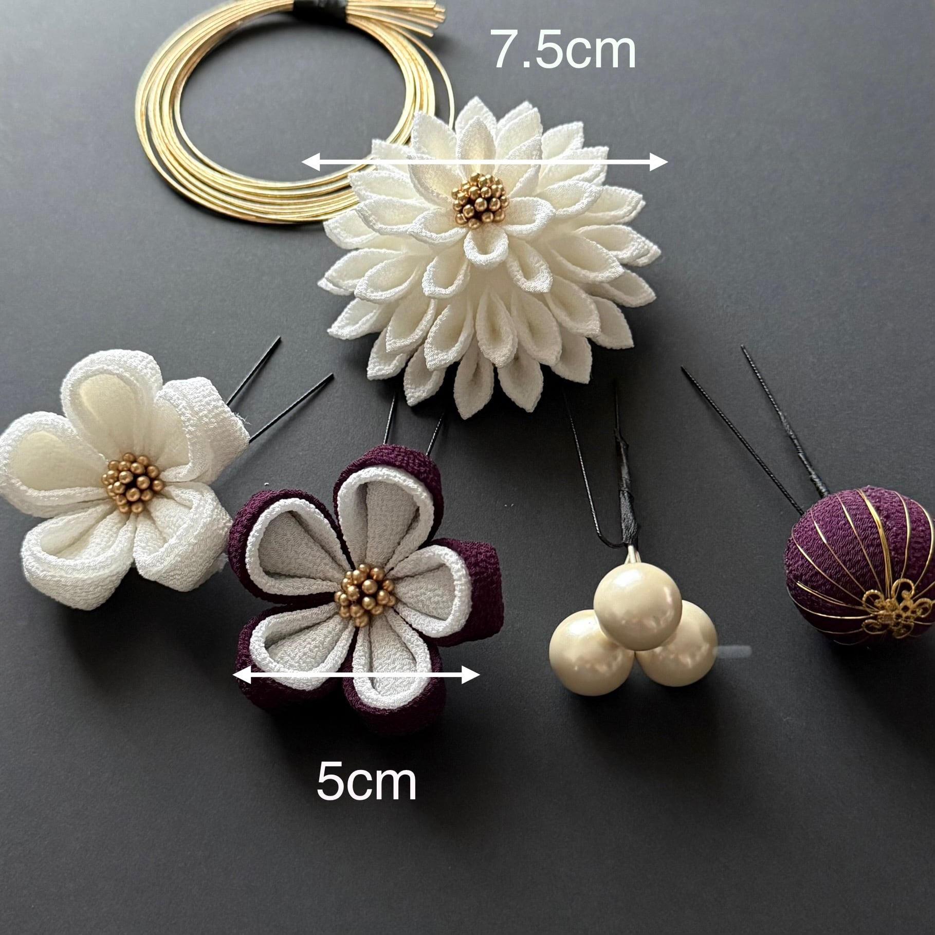 つまみ細工髪飾り 成人式 婚礼|『紫宵(ししょう)』ダリア・梅 紫 6点セット|華髪