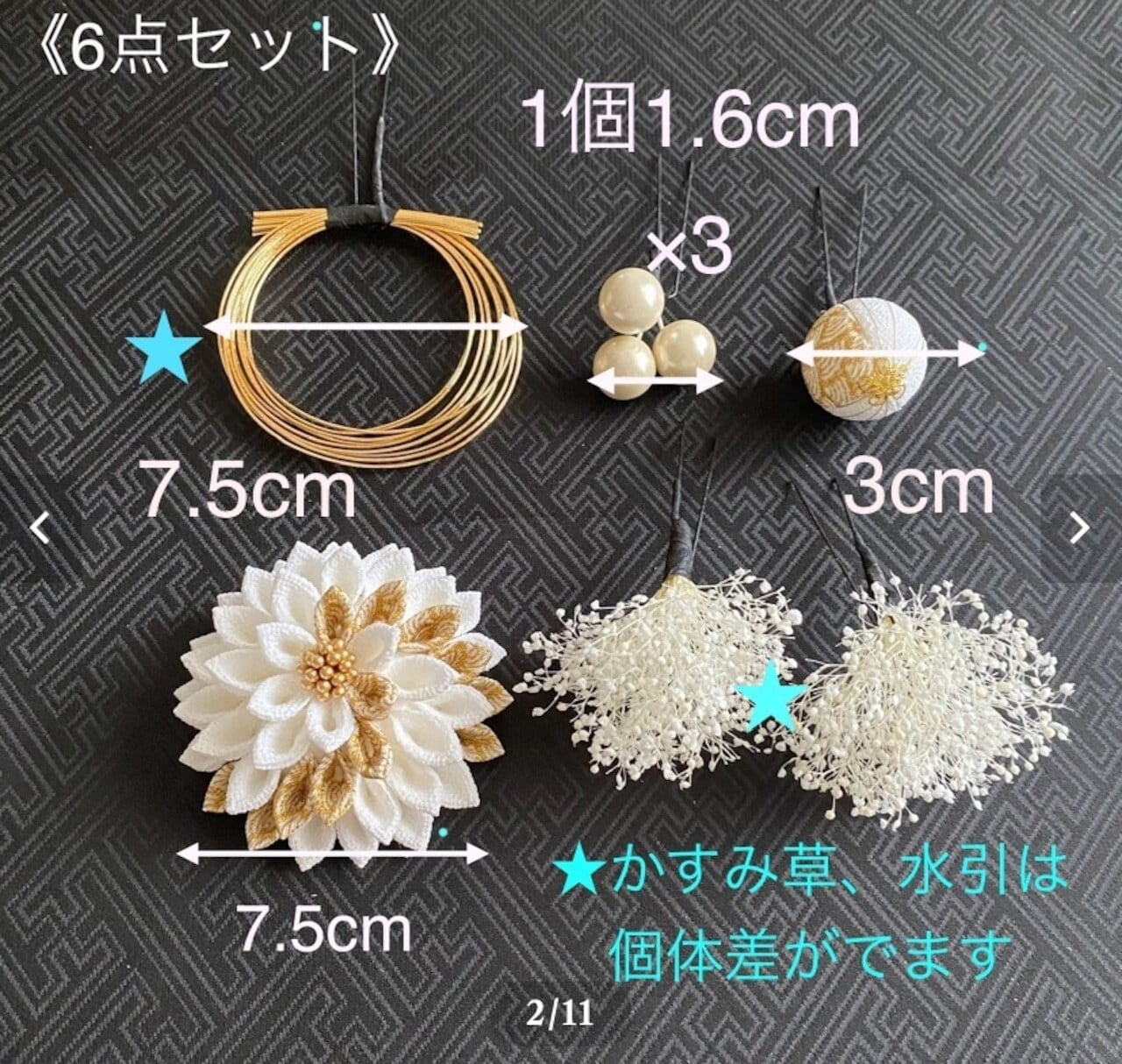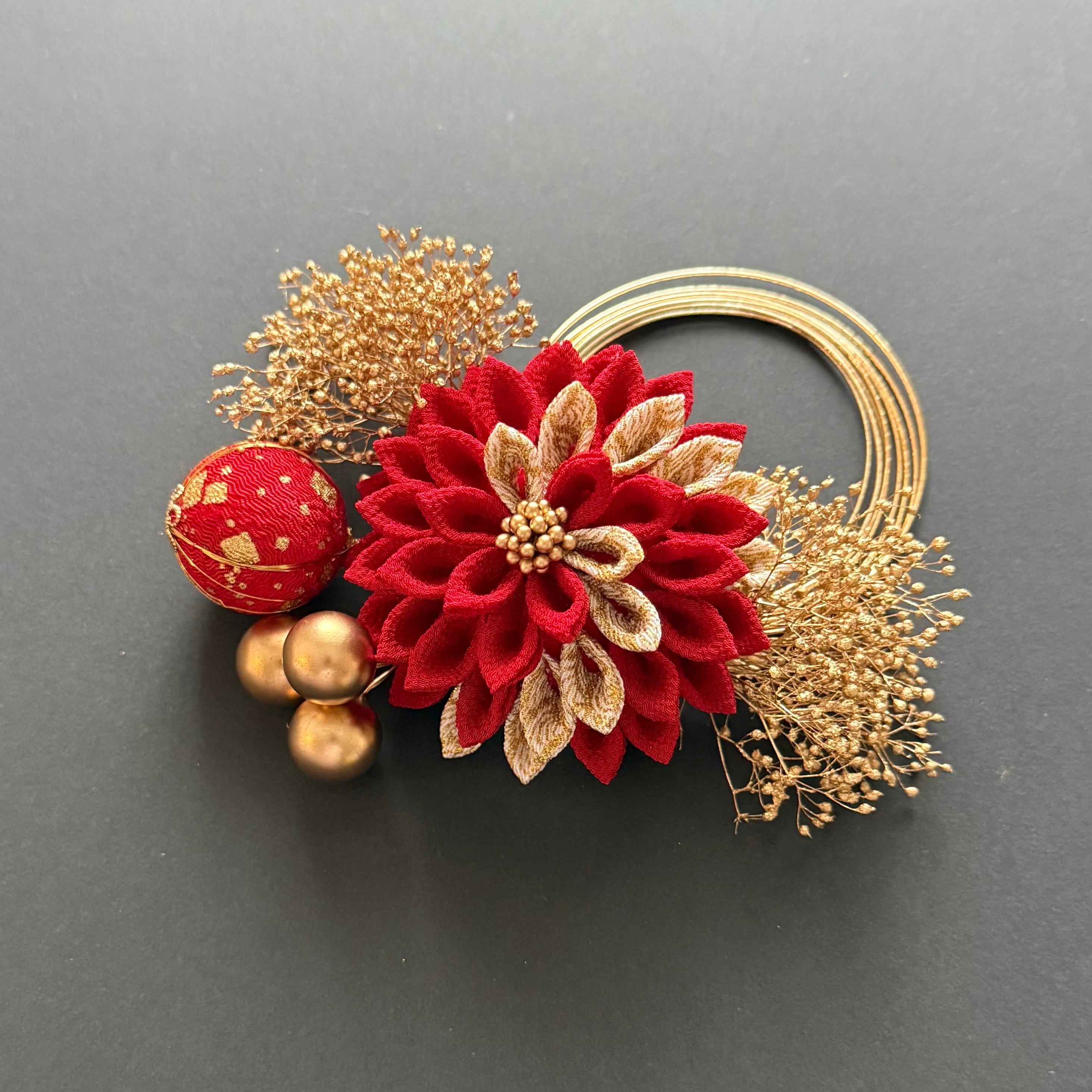 つまみ細工髪飾り 成人式 婚礼|ダリア・かすみ草 赤 6点セット|華髪
