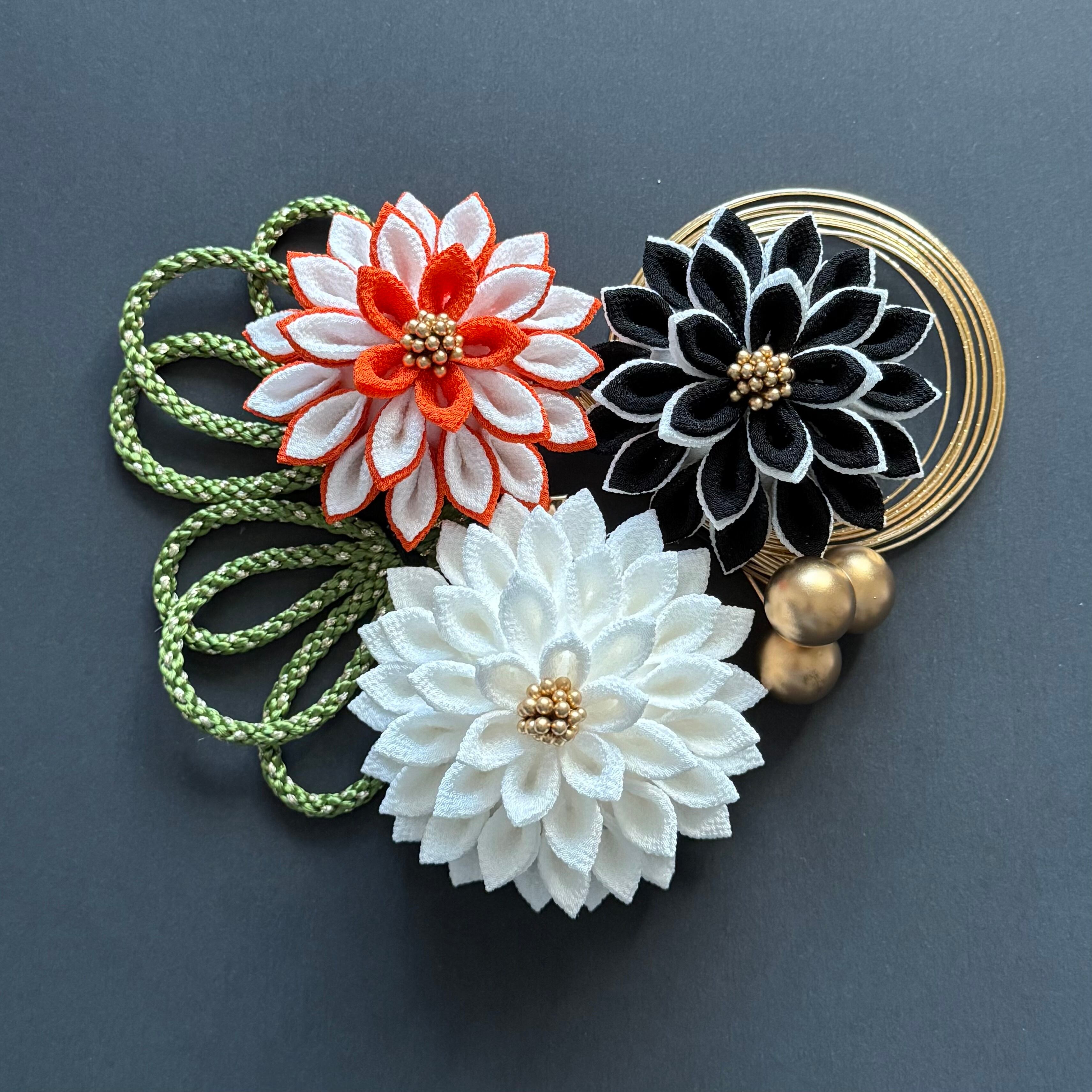 つまみ細工髪飾り 成人式 婚礼|ダリア・ 7点セット|華髪