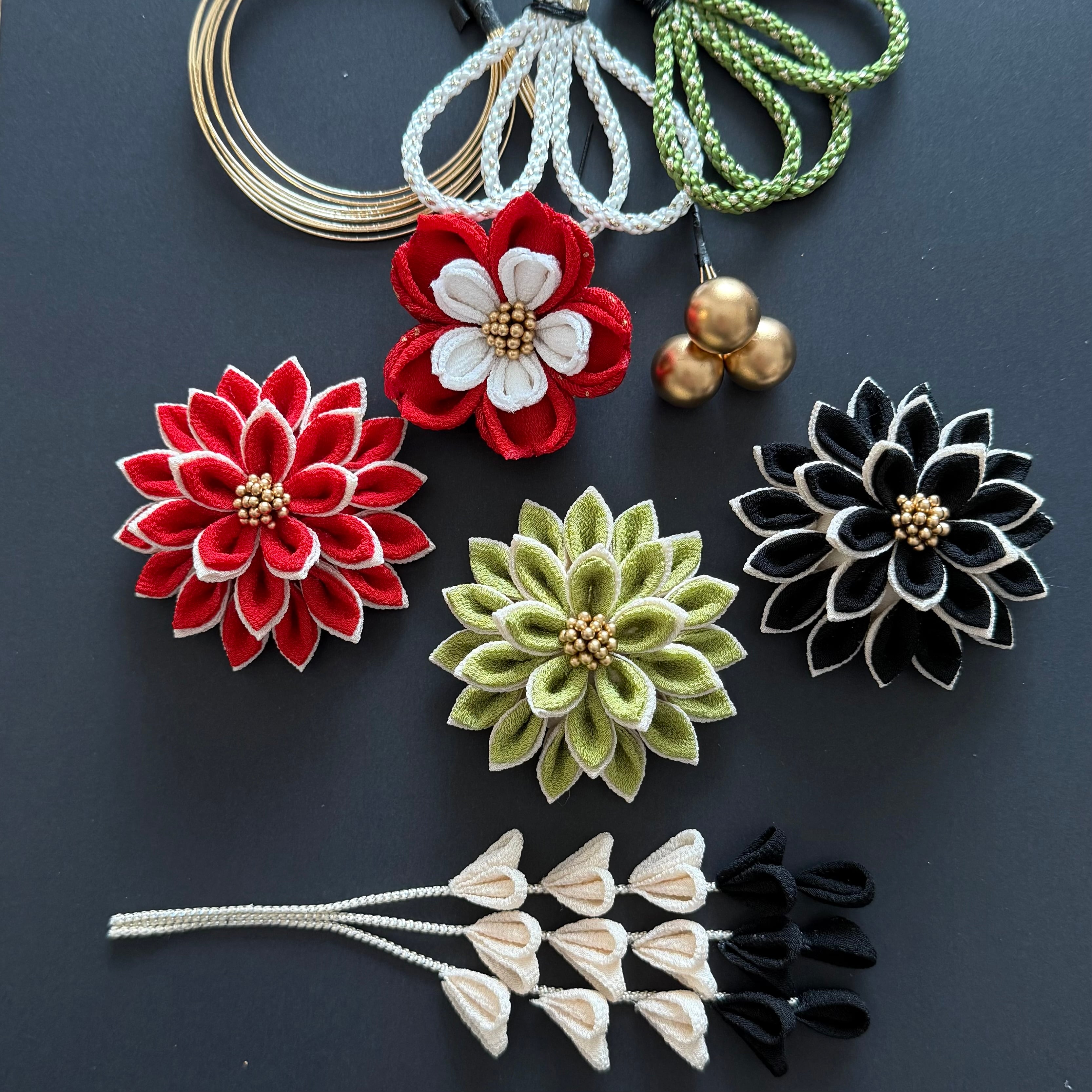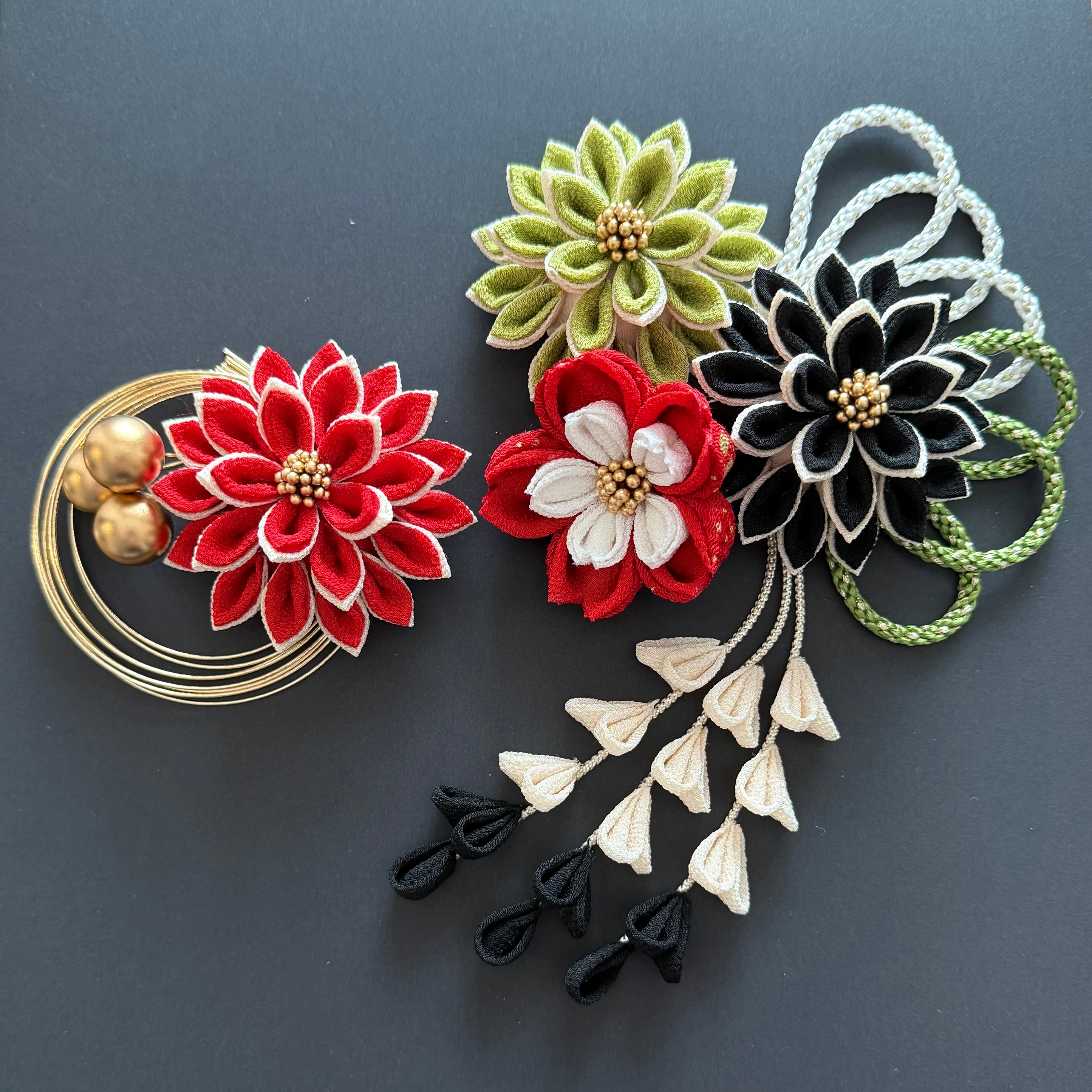 つまみ細工髪飾り 成人式 婚礼|ダリア・桜・ 9点セット|華髪